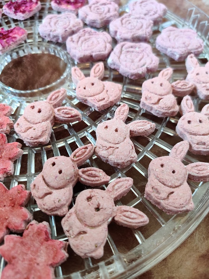 Valmistamme pääasiassa kaurajauhopohjaisia herkkuja, mutta myös muutamia timoteiheinäpohjaisia herkkuja. Suurin osa herkuista koostuu pelkästään kaurajauhoista ja yhdestä soseutetusta tuoreesta hedelmästä, marjasta tai kasviksesta. Osaan on lisättynä myös erilaisia kuivattuja kasveja tai kukkia. Nämä kuivataan valmistuksen jälkeen hyötykasvikuivurilla perusteellisesti parhaan säilyvyyden takaamiseksi. Tarkat ainesosat on aina listattuna tuotteen tiedoissa ja ne lukee myös pussissa olevassa tuotetarrassa.